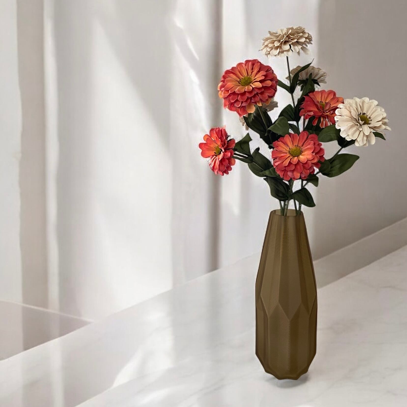 【造花】ジニア くすみ系 コーラル/ベージュ 光触媒