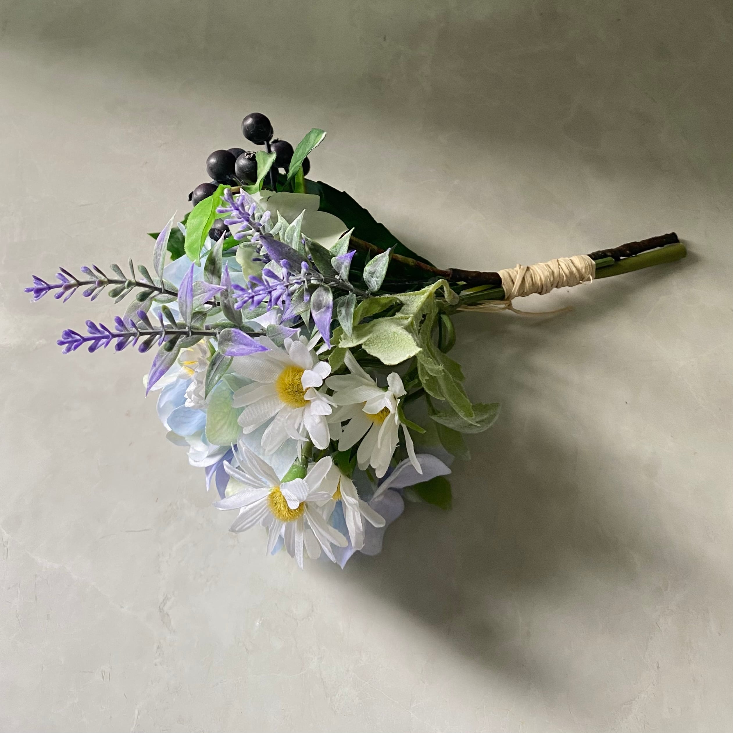 【造花】アジサイとマーガレットとラベンダーとブルーベリーのブーケ 光触媒/花束/初夏の花束