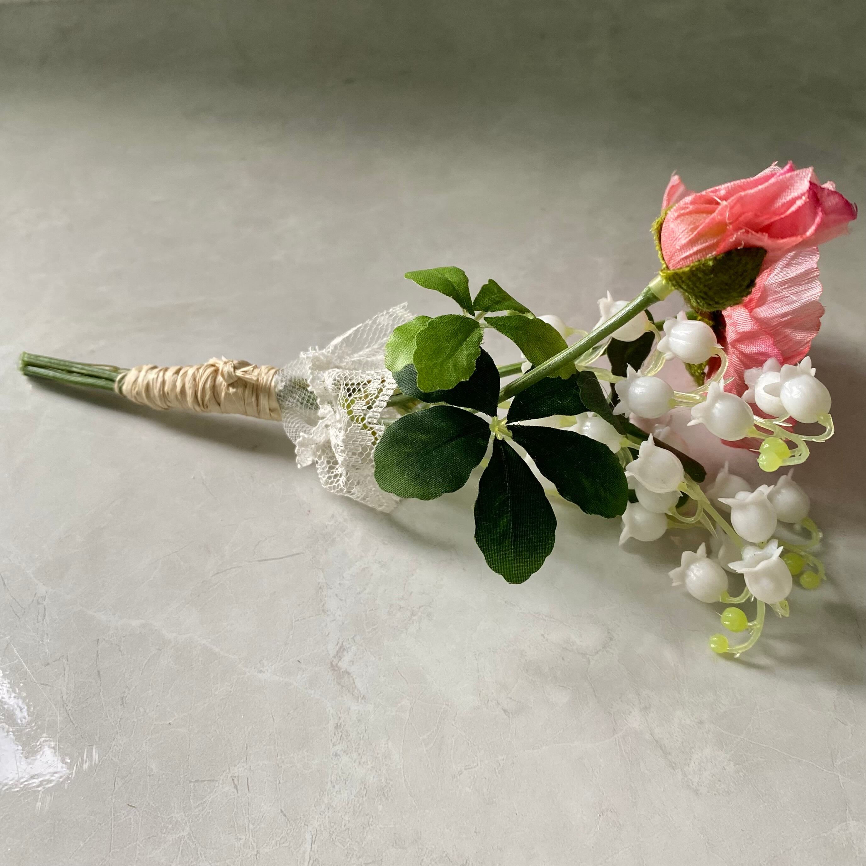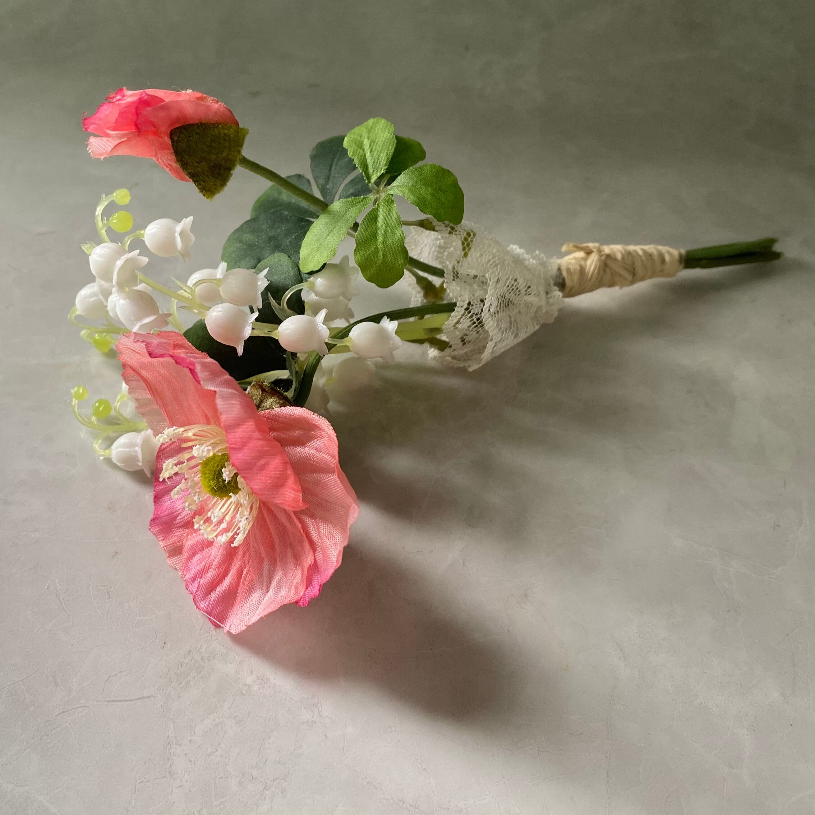 【造花】ポピーとスズランとシサスアイビーのミニブーケ 光触媒/春の花束/ミニサイズフラワー