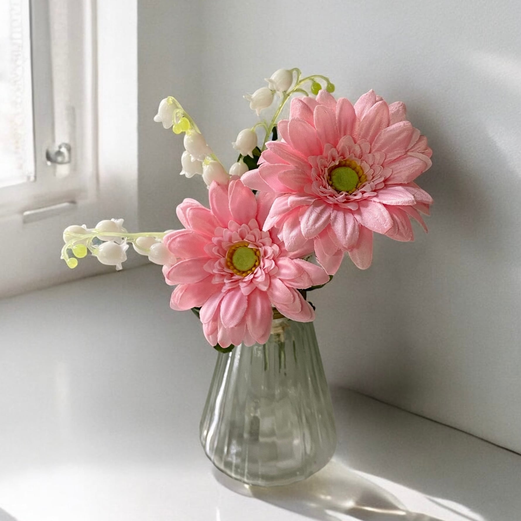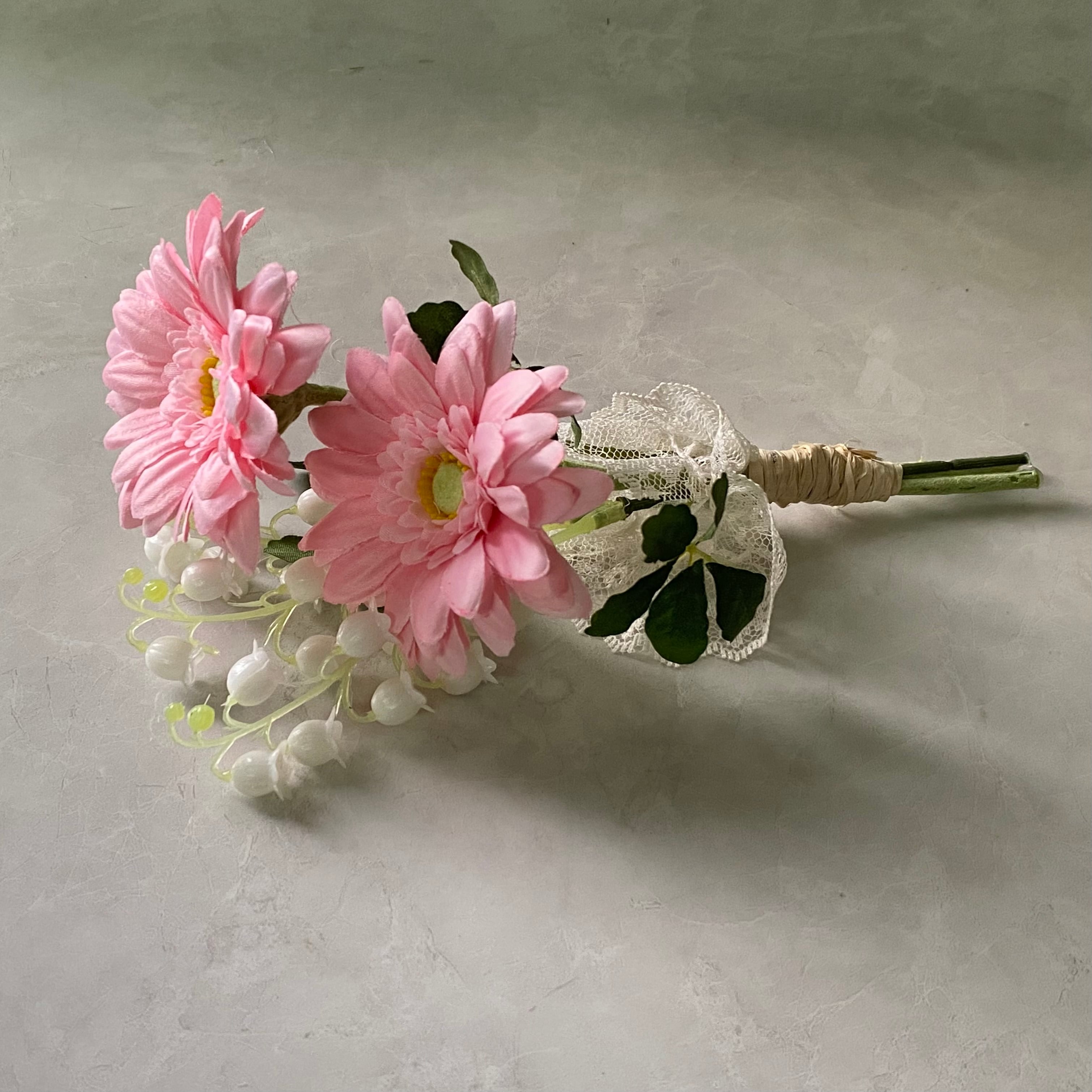 【造花】ガーベラとスズランとシサスアイビーのミニブーケ 光触媒/春の花束/ミニサイズフラワー
