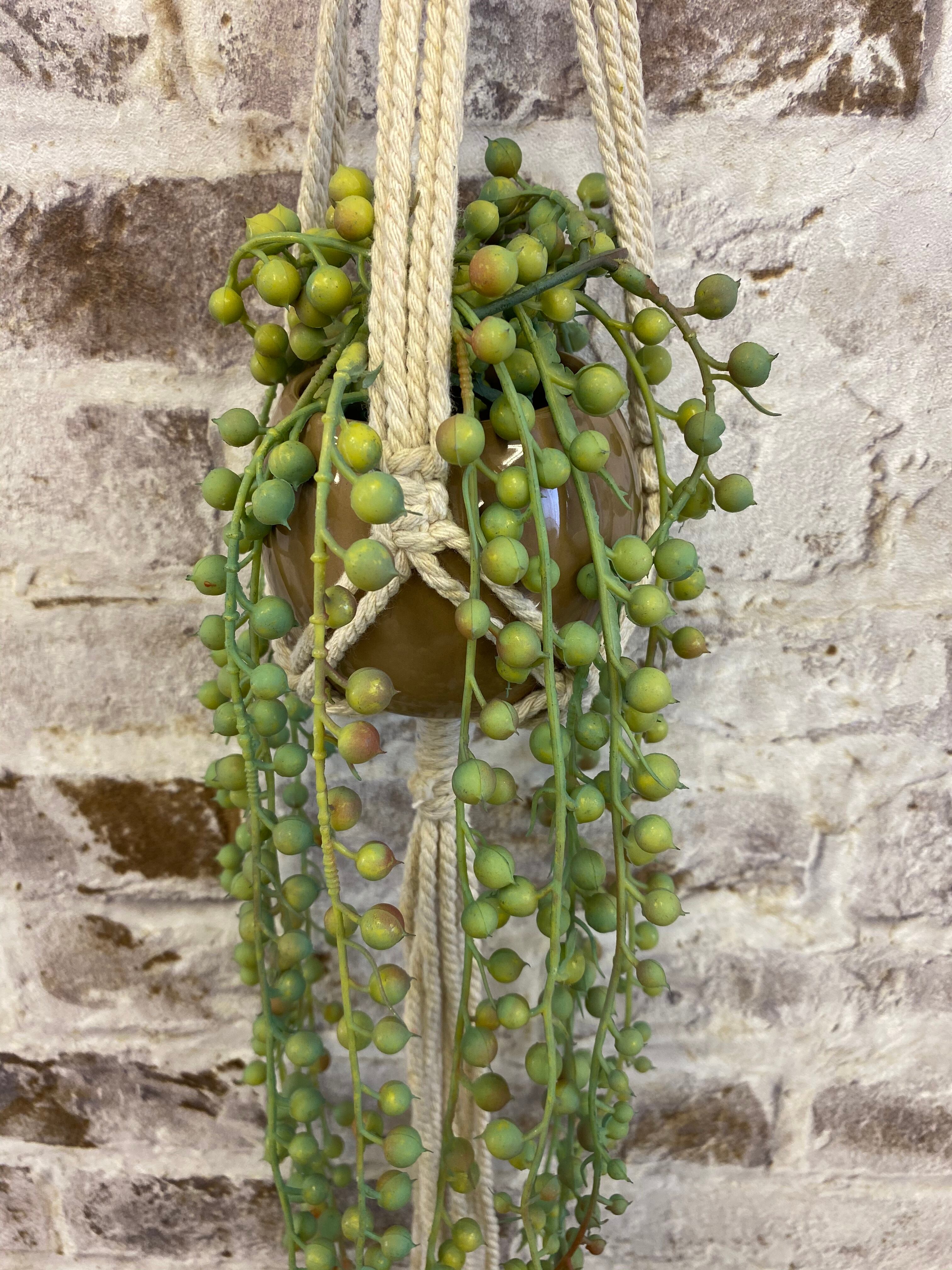 光触媒造花 マクラメハンガー/グリーンネックレス(新品)器付き 造花 インテリアグリーン