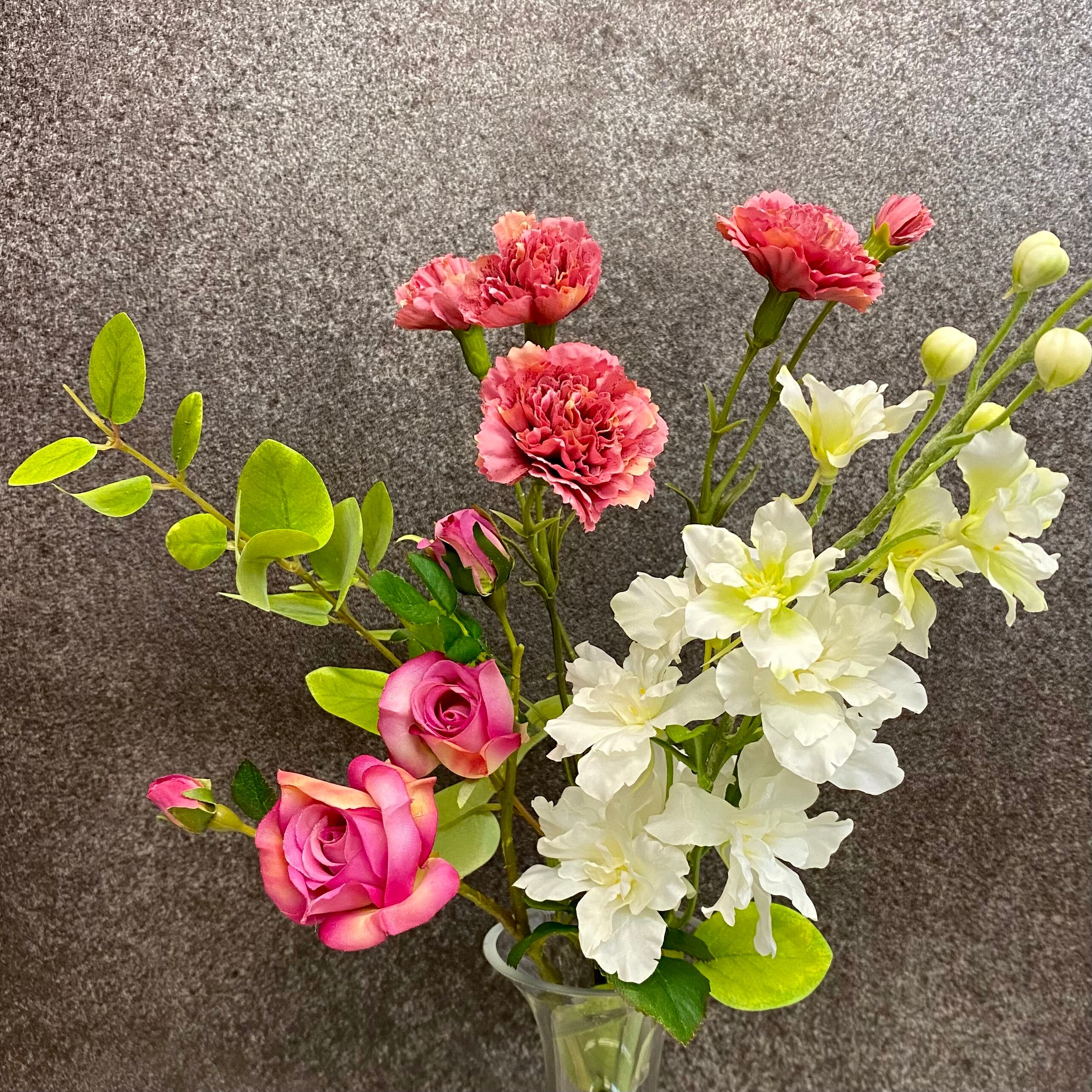 光触媒造花 カーネーションとデルフィニウムのブーケ
