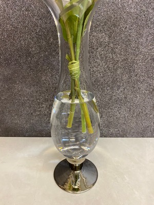 花瓶に水を入れてご使用される場合は、ブーケを束ねている部分より下の位置(写真のように)に水をお入れください。